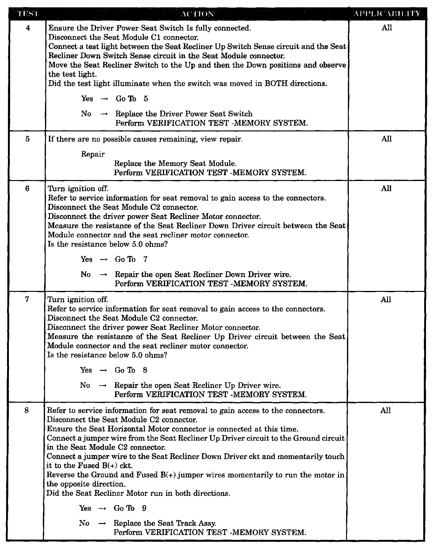 - Seat recliner up driver wire open