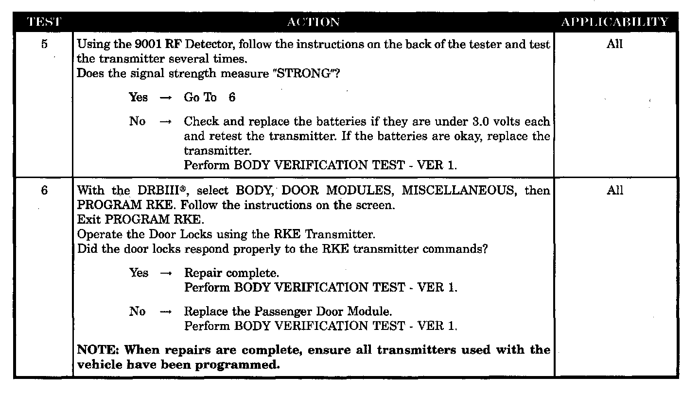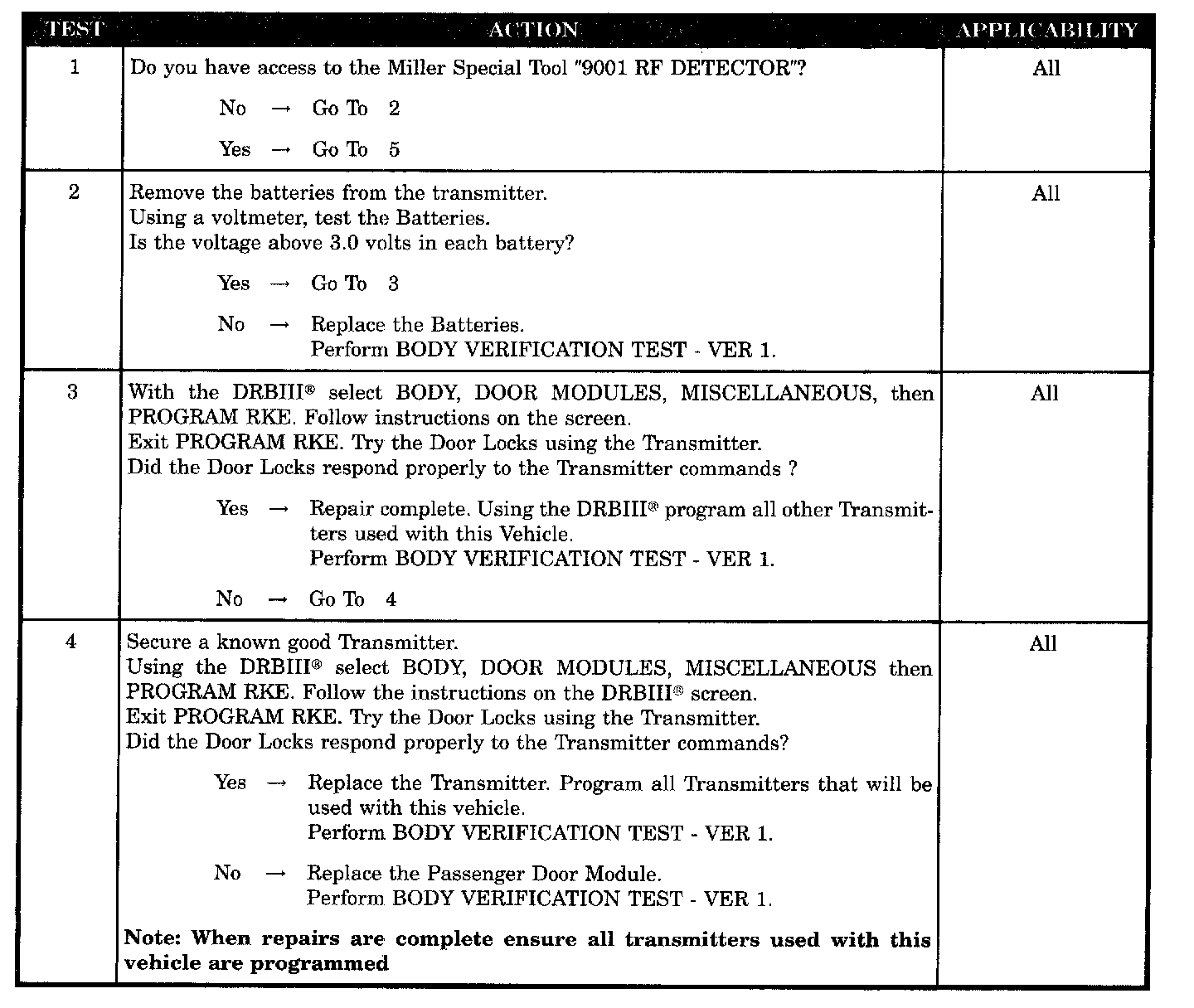 REMOTE KEYLESS ENTRY INOPERATIVE