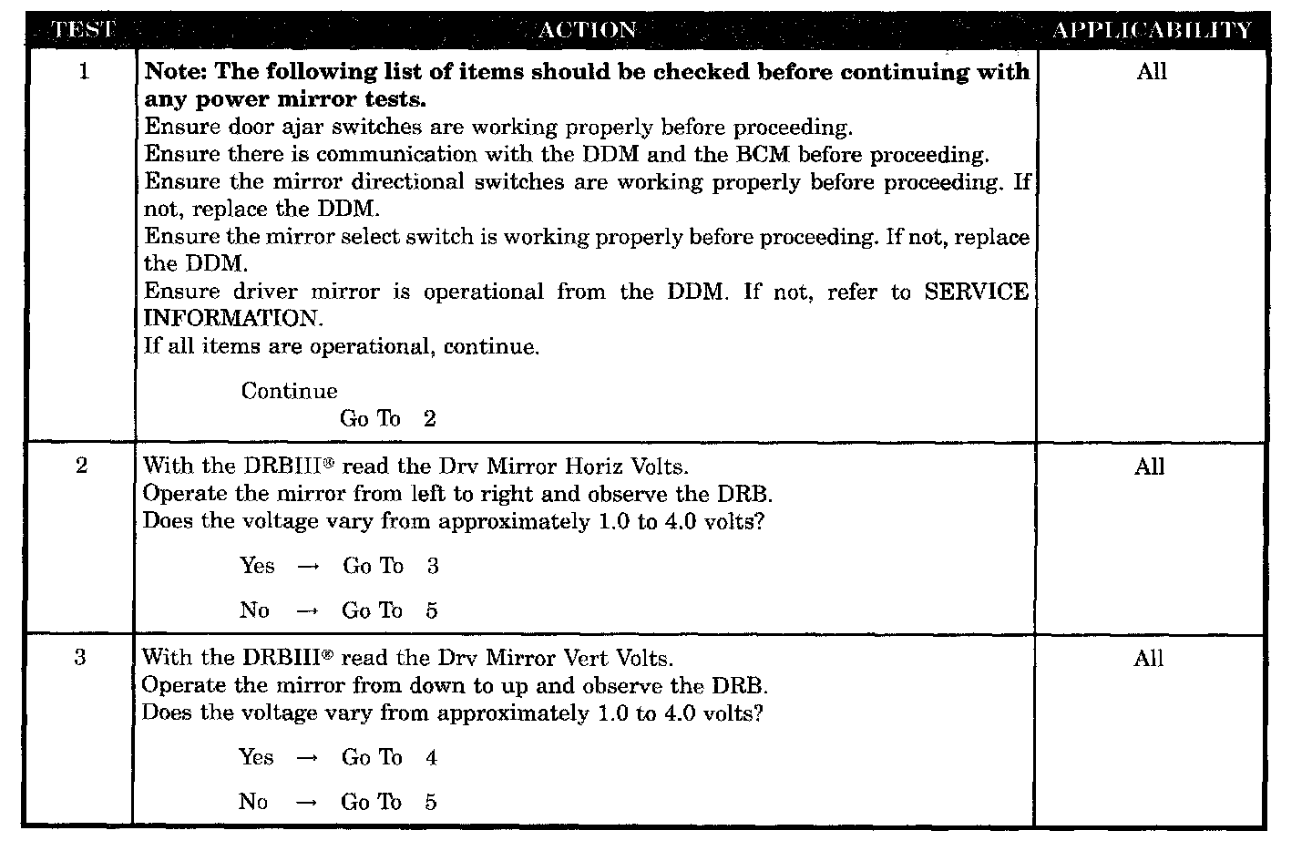 - Driver mirror sensor ground shorted to mirror horizontal position signal