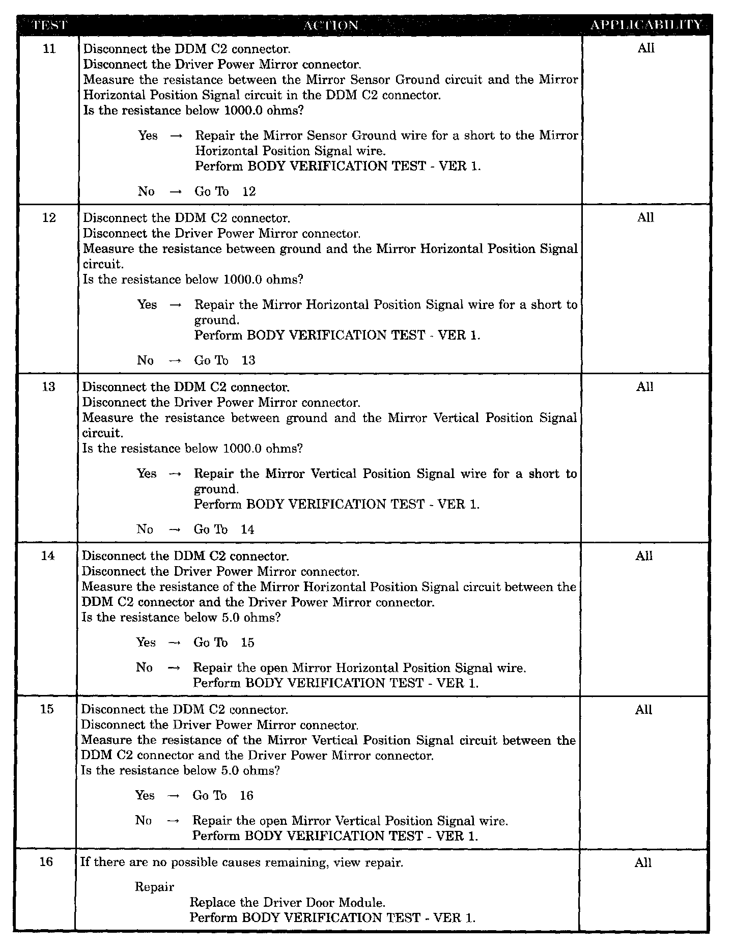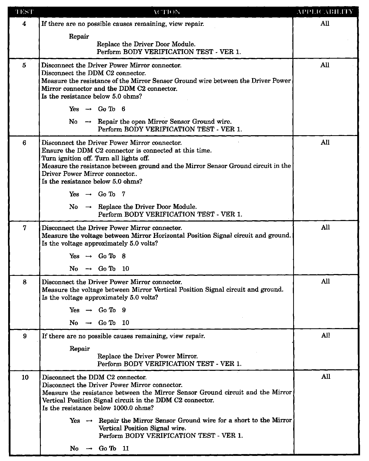 - Driver mirror sensor ground shorted to mirror vertical position signal