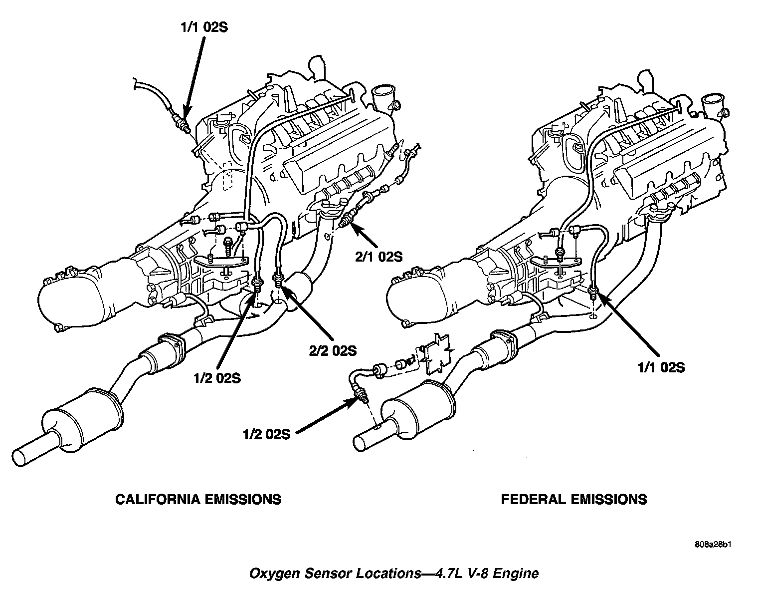 Oxygen Sensor Locations - 4.7L Engine: