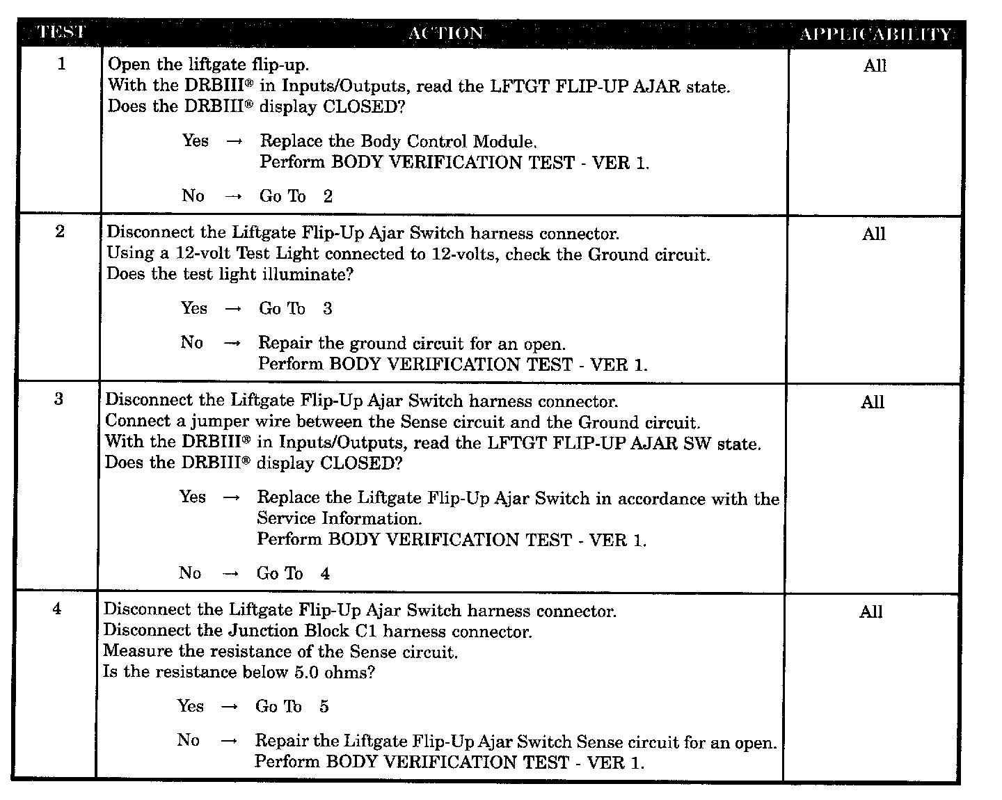 LIFTGATE FLIP-UP AJAR CIRCUIT OPEN