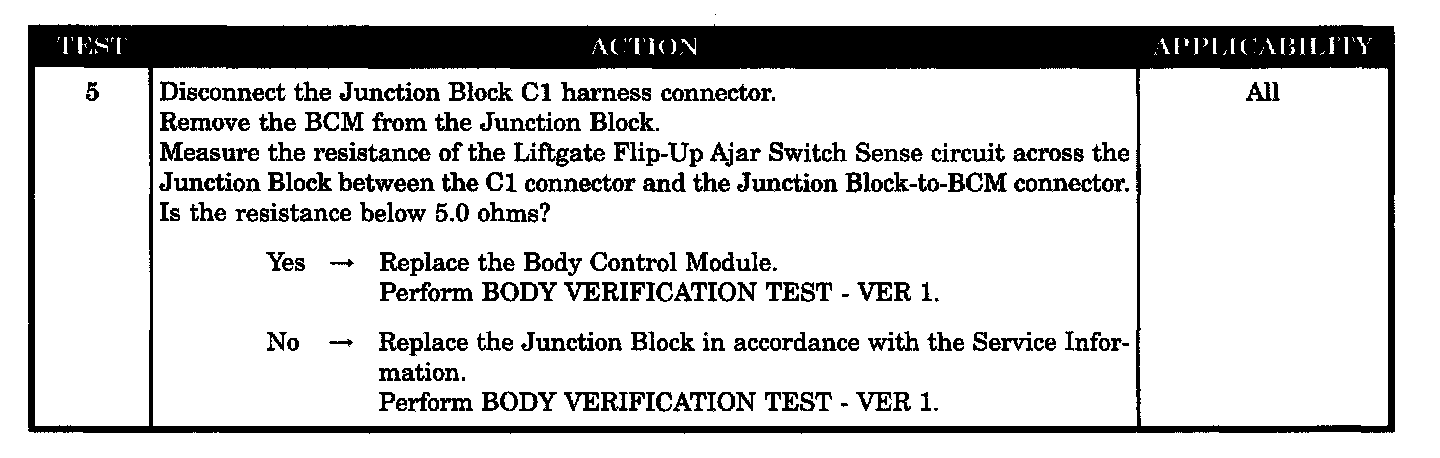 - Junction block - open liftgate flip-up ajar switch sense circuit