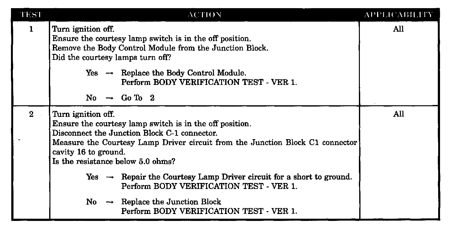 COURTESY LAMPS ON AT ALL TIMES (EXCEPT BOTH FRONT DOOR COURTESY LAMPS IF EQUIP)