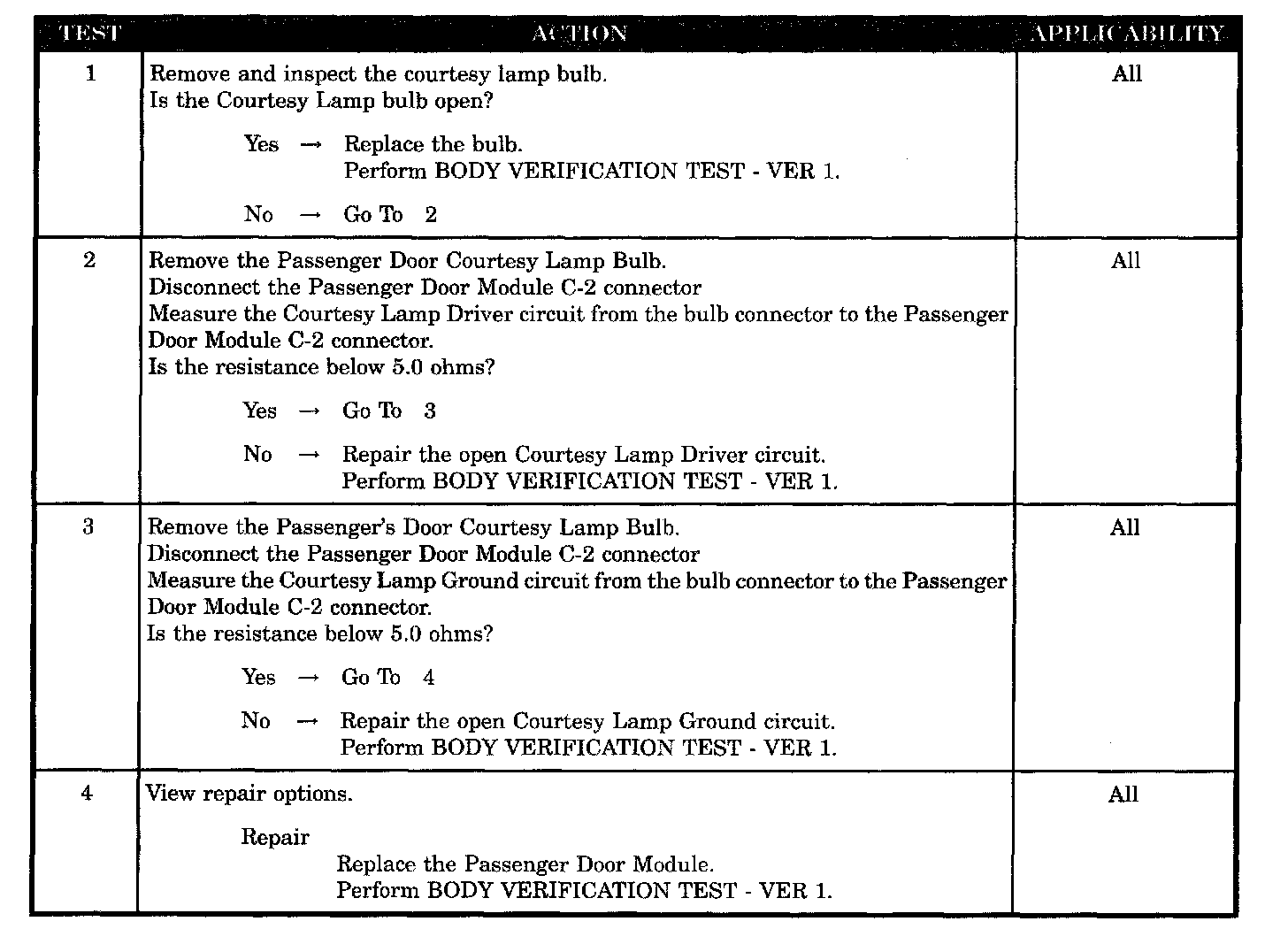 PASSENGER DOOR COURTESY LAMP INOPERATIVE