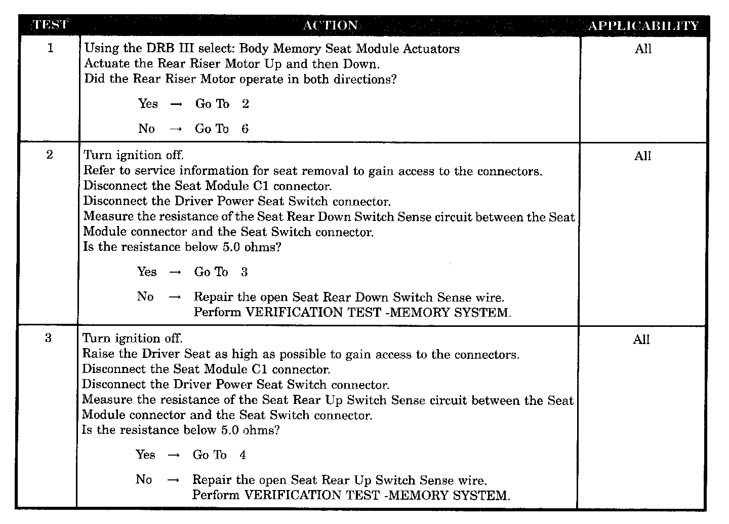 DRIVER SEAT REAR RISER MOVEMENT INOPERATIVE