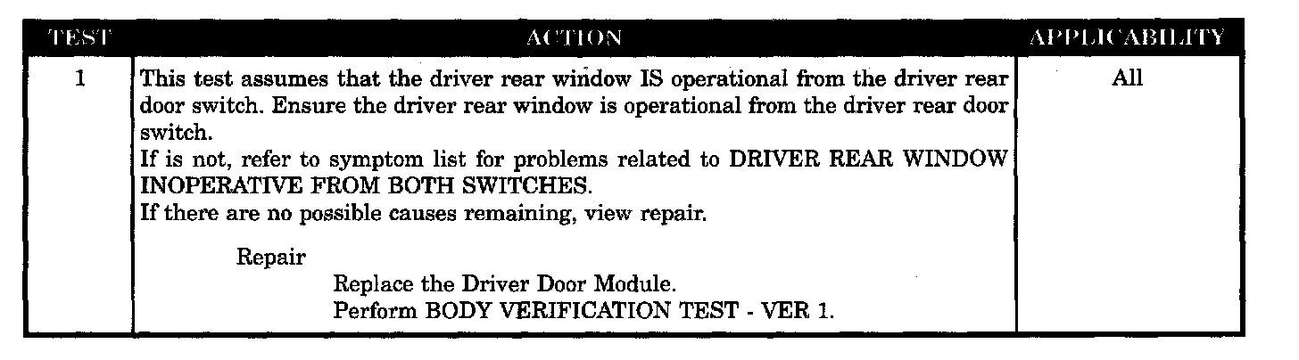 DRIVER REAR WINDOW INOPERATIVE FROM DDM
