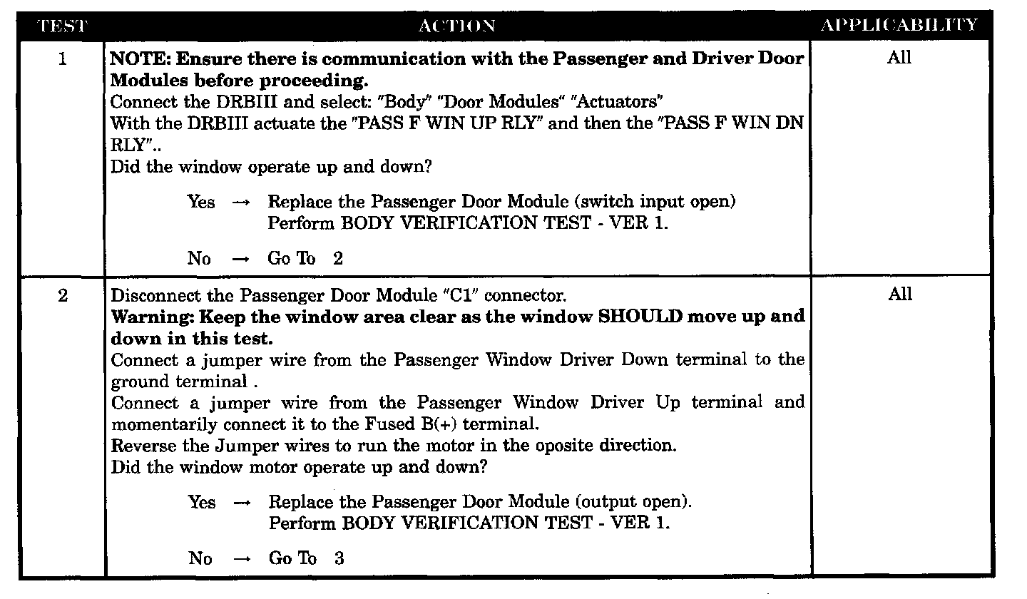 - Passenger window driver up shorted to voltage