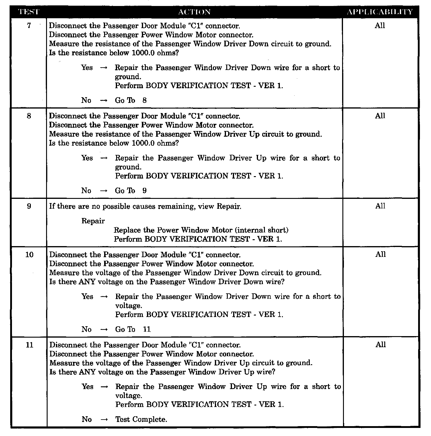 - Passenger window driver up shorted to ground