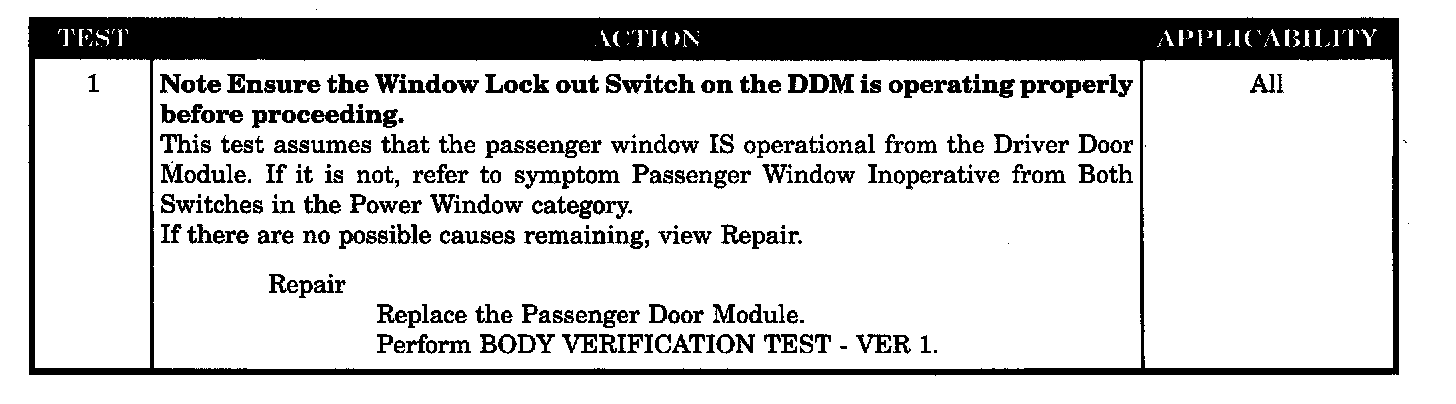 PASSENGER WINDOW INOPERATIVE FROM PDM