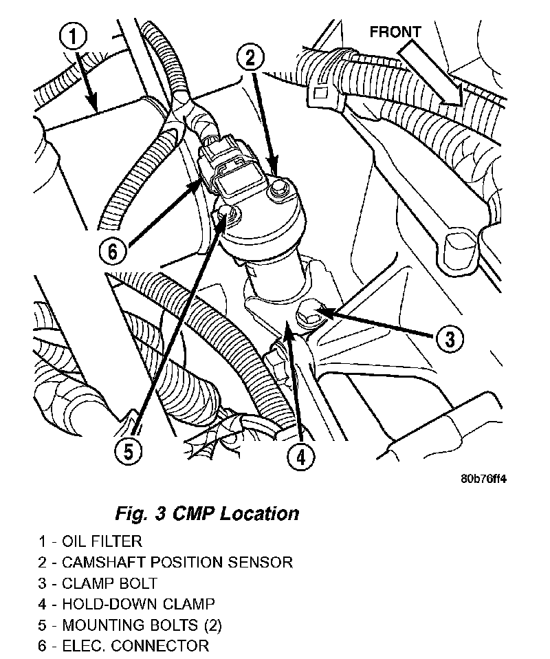 The Automatic Shutdown (ASD) relay is located in the Power Distribution Center (PDC).Fig.3 CMP Location - 4.0L Engine: