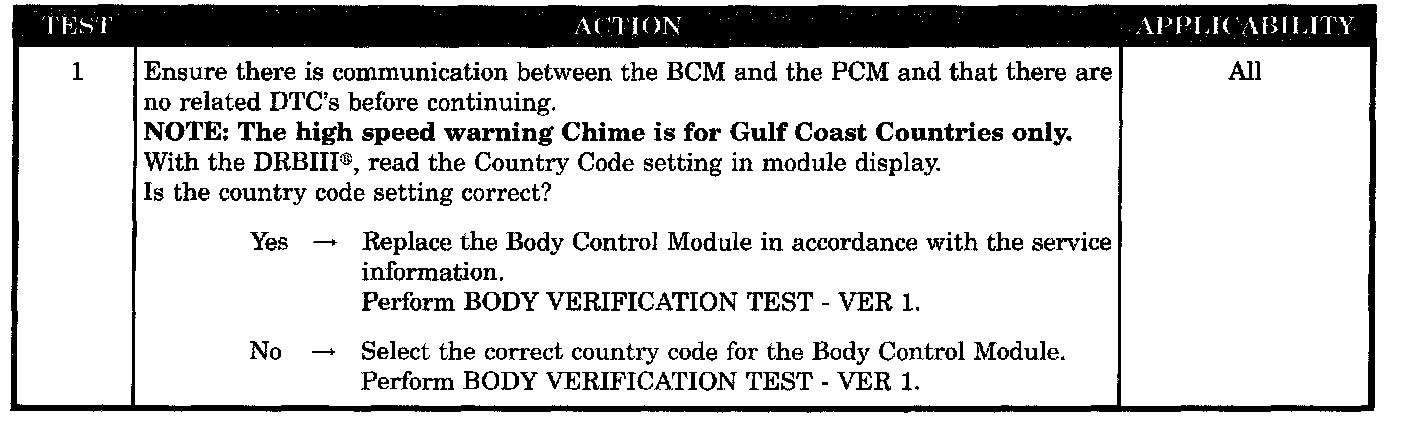 VEHICLE SPEED WARNING CHIME PROBLEM