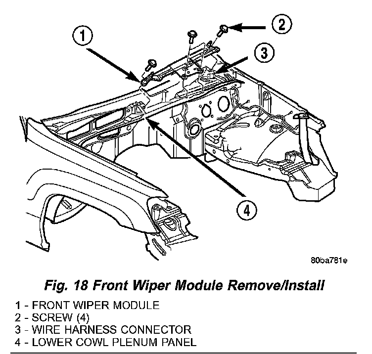 Fig. 18 Front Wiper Module Remove/Install: