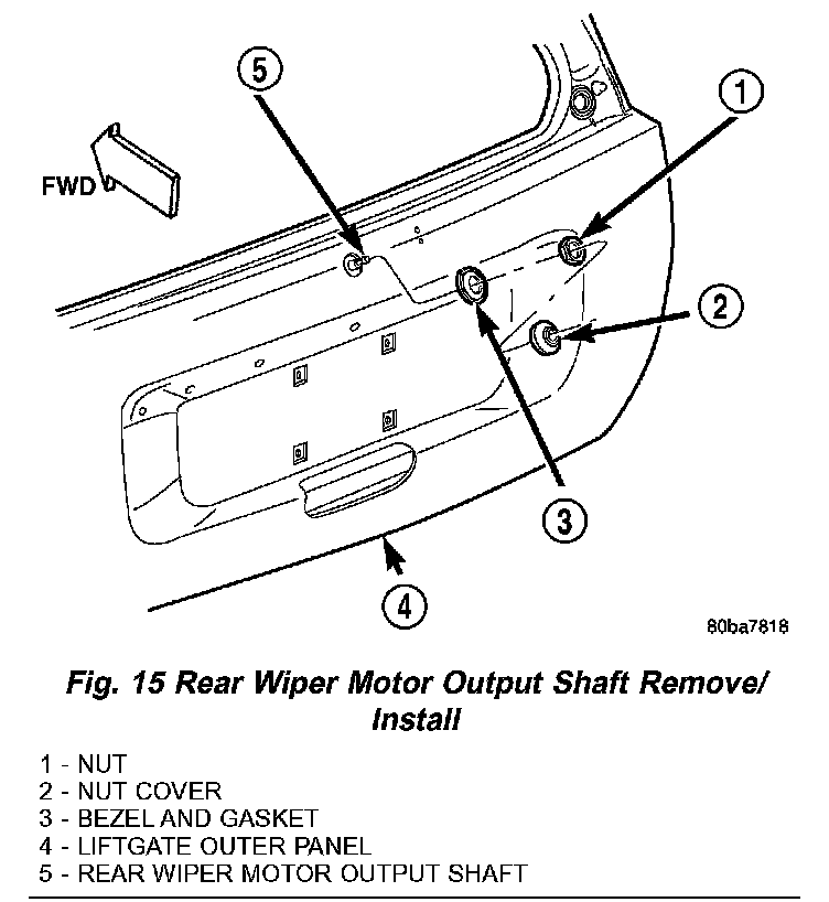 Fig. 15 Rear Wiper Motor Output Shaft Remove/Install: