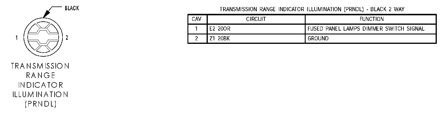 Transmission Range Indicator Illumination (PRNDL):