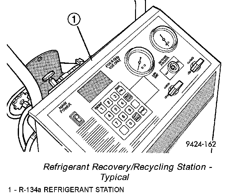 When servicing the air conditioning system, a R-134a refrigerant recovery/recycling/charging station that meets SAE Standard J2210 must be used.Contact an automotive service equipment supplier for refrigerant recovery/recycling/charging equipment. Refer to the operating instructions supplied by the equipment manufacturer for proper care and use of this equipment.