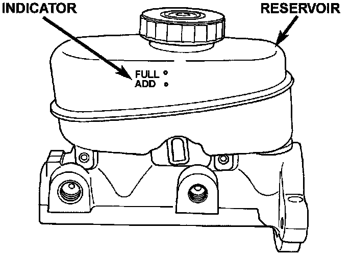 The fluid fill level is indicated on the side of the master cylinder reservoir.