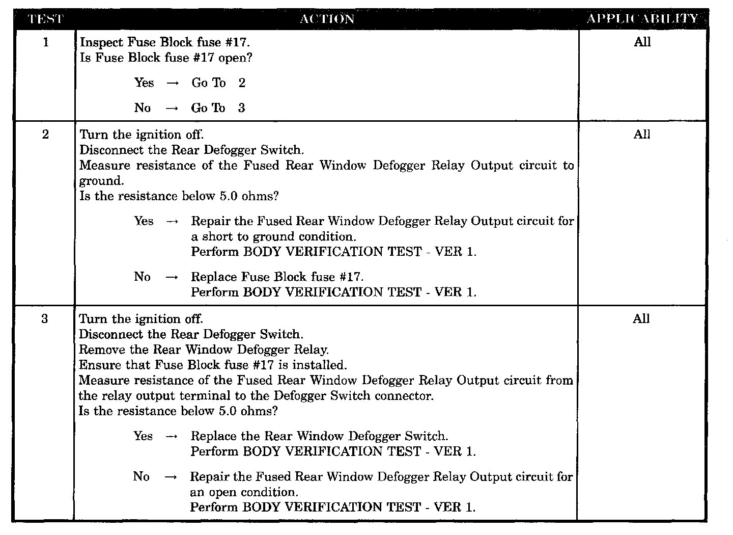 REAR WINDOW DEFOGGER SWITCH INDICATOR LAMP INOPERATIVE