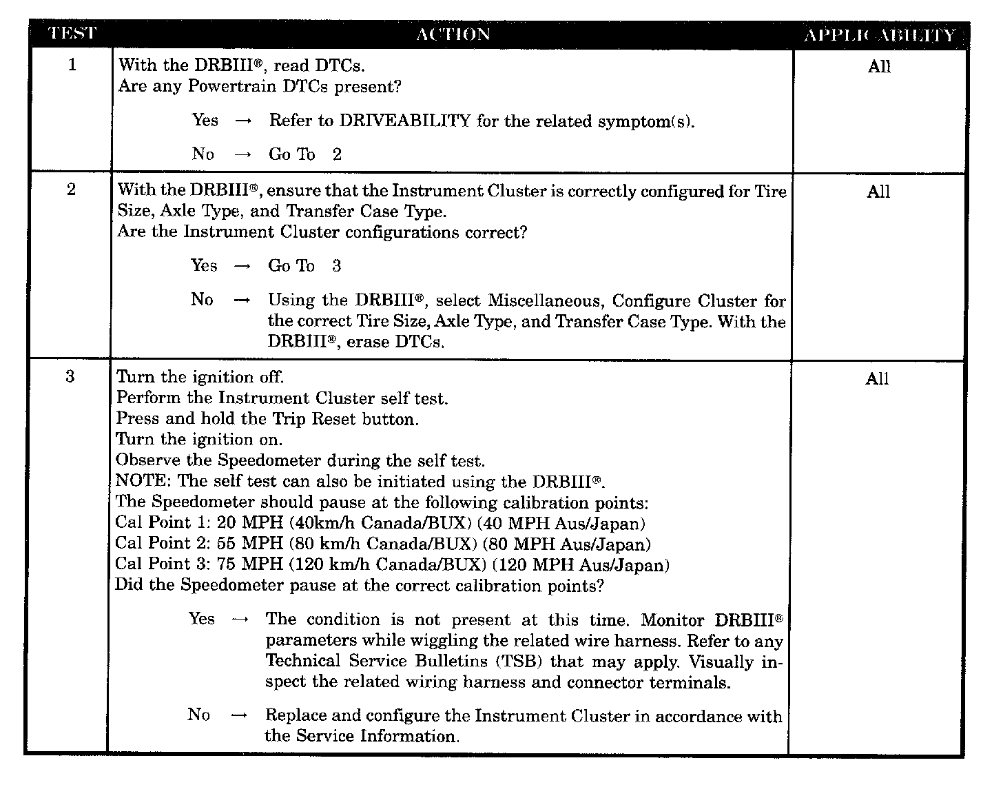 SPEEDOMETER INACCURATE OR INOPERATIVE
