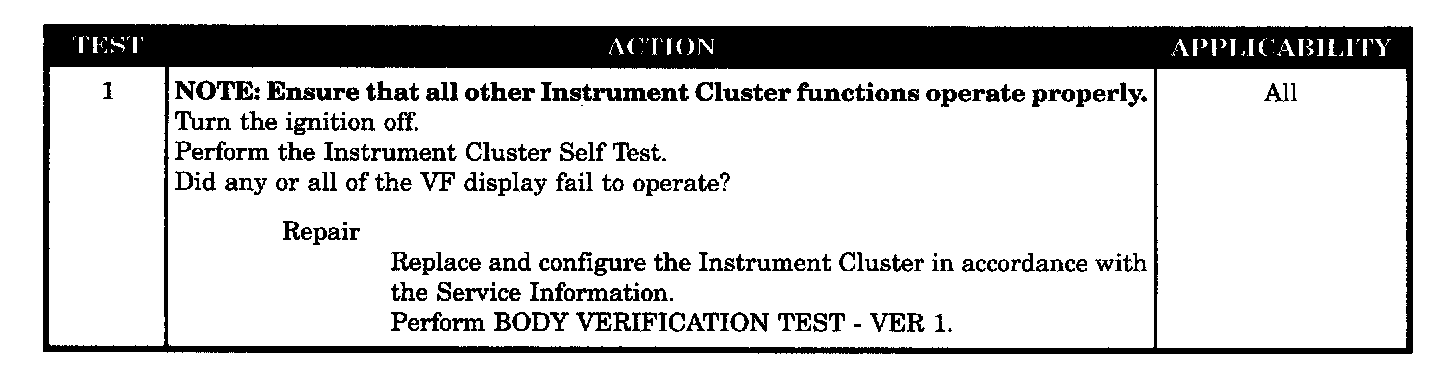 VF DISPLAY INOPERATIVE
