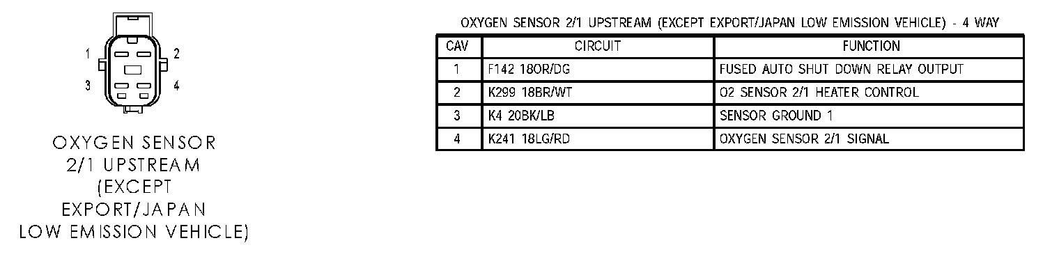 Oxygen Sensor 2/1 Upstream (Except Export/Japan Low Emission Vehicle):