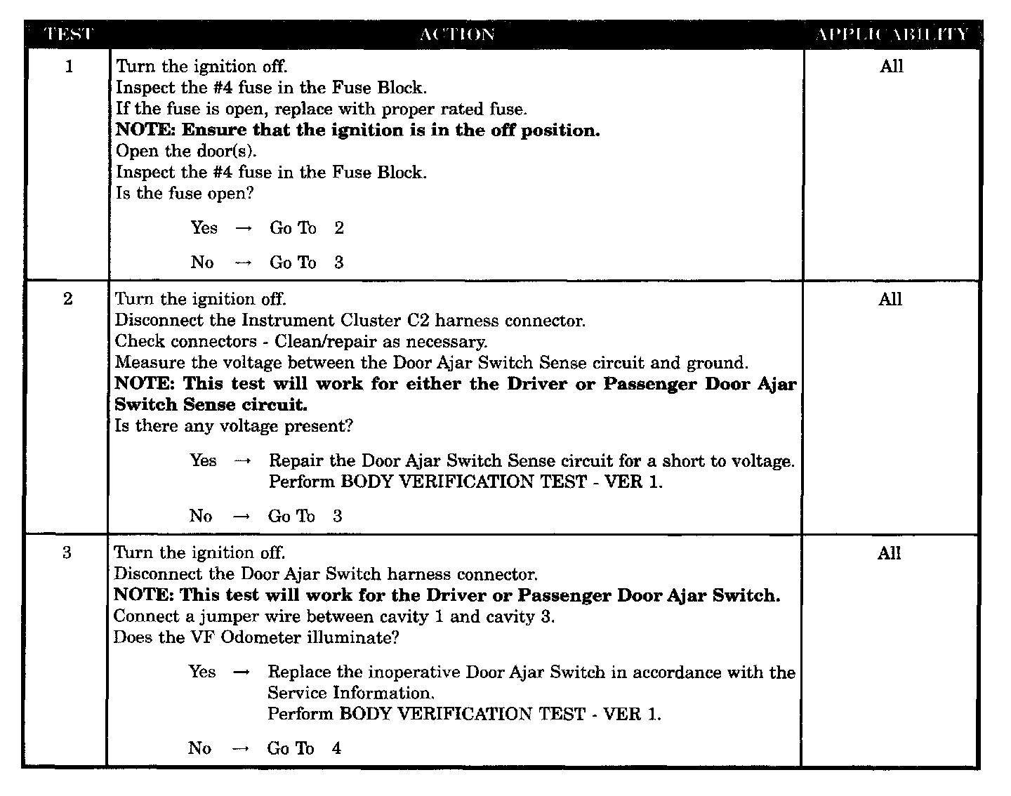 VF ODOMETER INOPERATIVE WITH DOOR OPEN