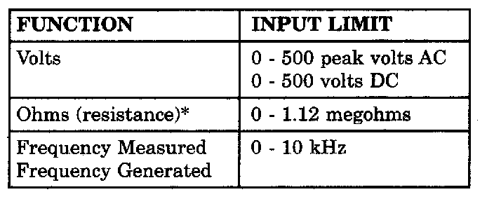 - Voltage between any terminal and ground must not exceed 500 v DC or 500 v peak AC.