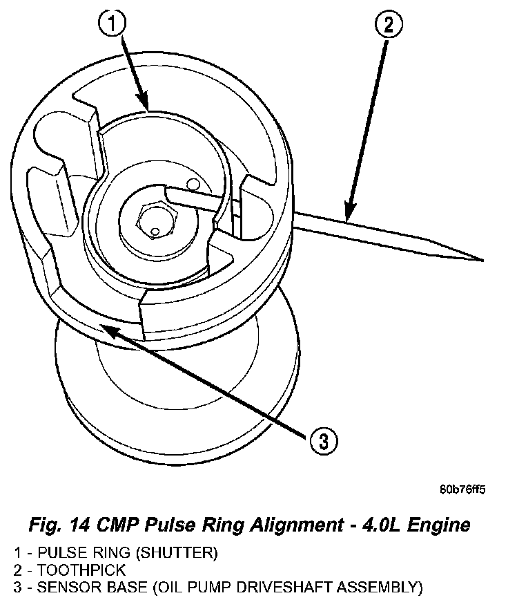 Fig. 14 CMP Pulse Ring Alignment - 4.0L Engine: