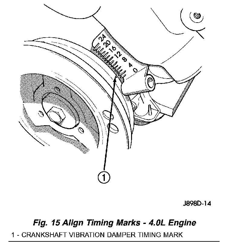 Fig. 15 Align Timing Marks - 4.0L Engine:
