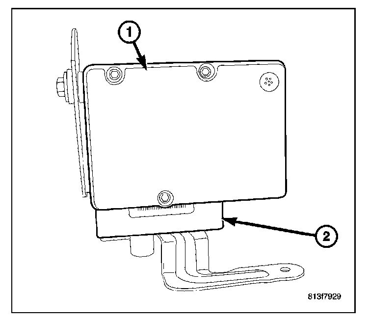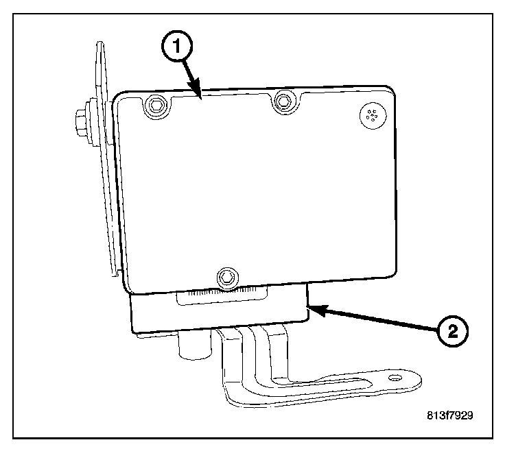 11. Remove the HCU (1) with the bracket (2) from the vehicle.