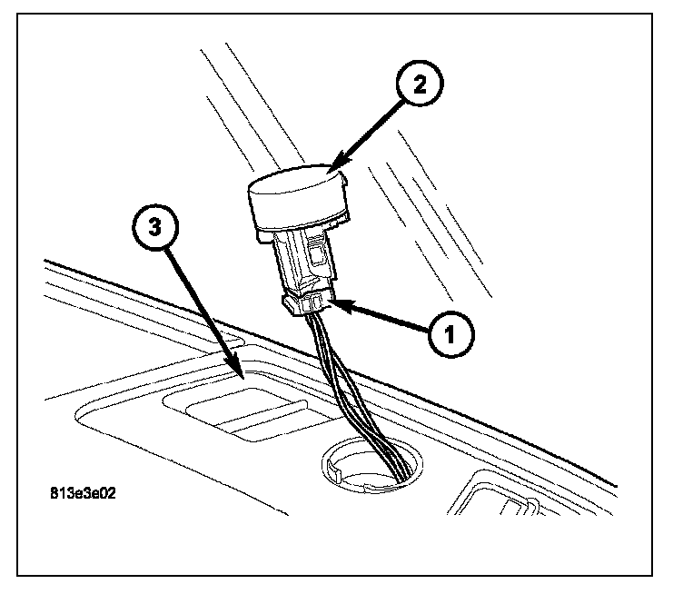3. Carefully pull the sun sensor (1) partially out of the instrument panel (2) and disconnect the wire harness connector (3) from the sensor.
