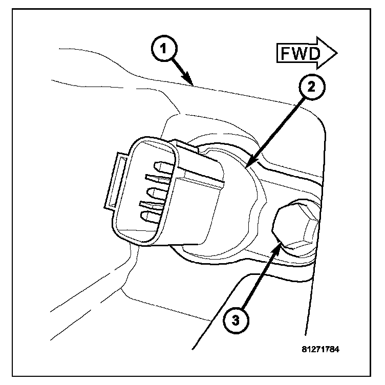 CAUTION: Before tightening sensor mounting bolt, be sure sensor is completely flush to timing chain cover. If sensor is not flush, damage to sensor mounting tang may result.