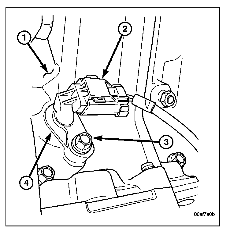 REMOVALThe Crankshaft Position (CKP) sensor (4) is located at the right-rear side of the engine cylinder block (1). It is positioned and bolted into a machined hole in the engine block.