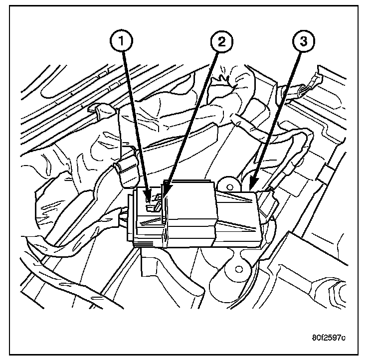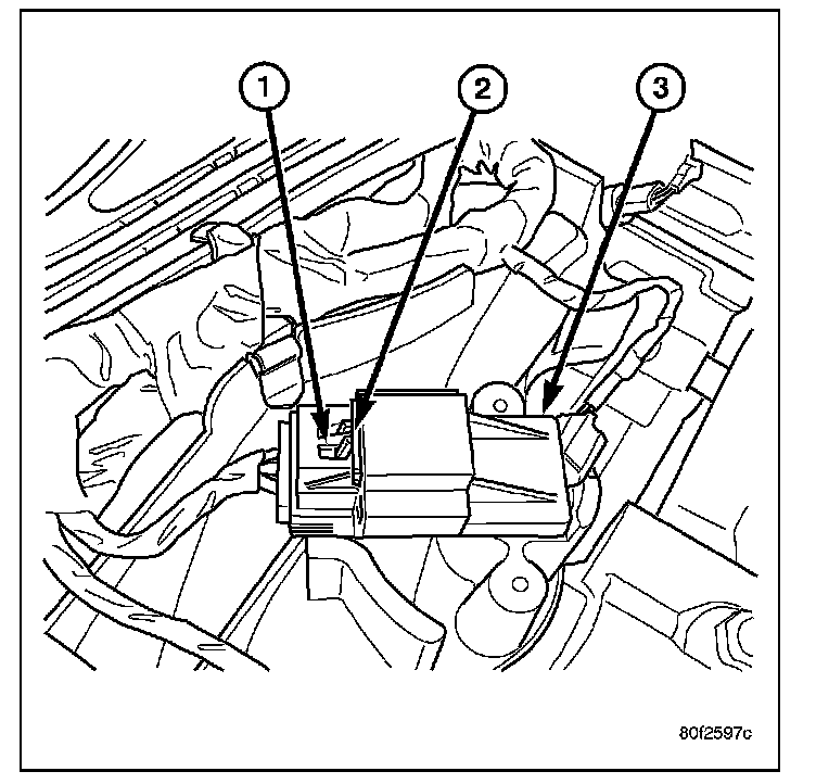 1. Disconnect electrical connector at sensor by sliding release lock out (1). Press down on lock tab (2) for removal.