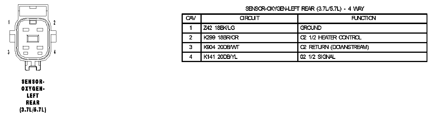 Sensor Oxyen Left Rear (3.7L/5.7L):