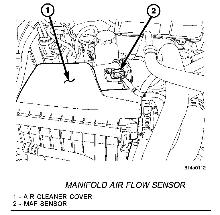 The Mass Air Flow (MAF) Sensor is located on the air cleaner cover. The MAF sensor uses semiconductor technology throughout, and is used to calculate the air mass flowing past it per time unit. This mass is important for determining the exhaust gas recirculation rate. The MAF sensor sends a corresponding signal to the ECM, which evaluates the signal to adjust the EGR air flow control valve.