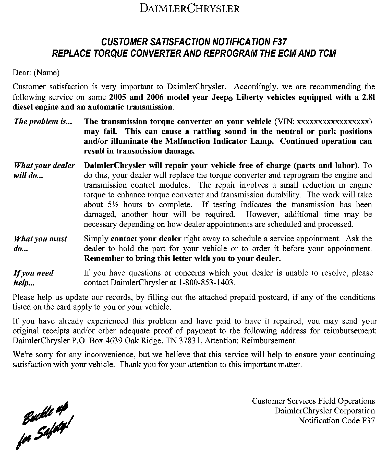 Recall - Torque Converter and Reprogram ECM/TCM