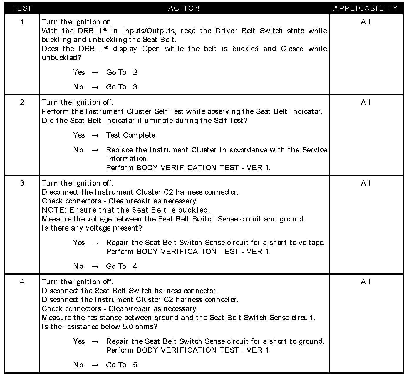 SEAT BELT INDICATOR NOT OPERATING PROPERLY
