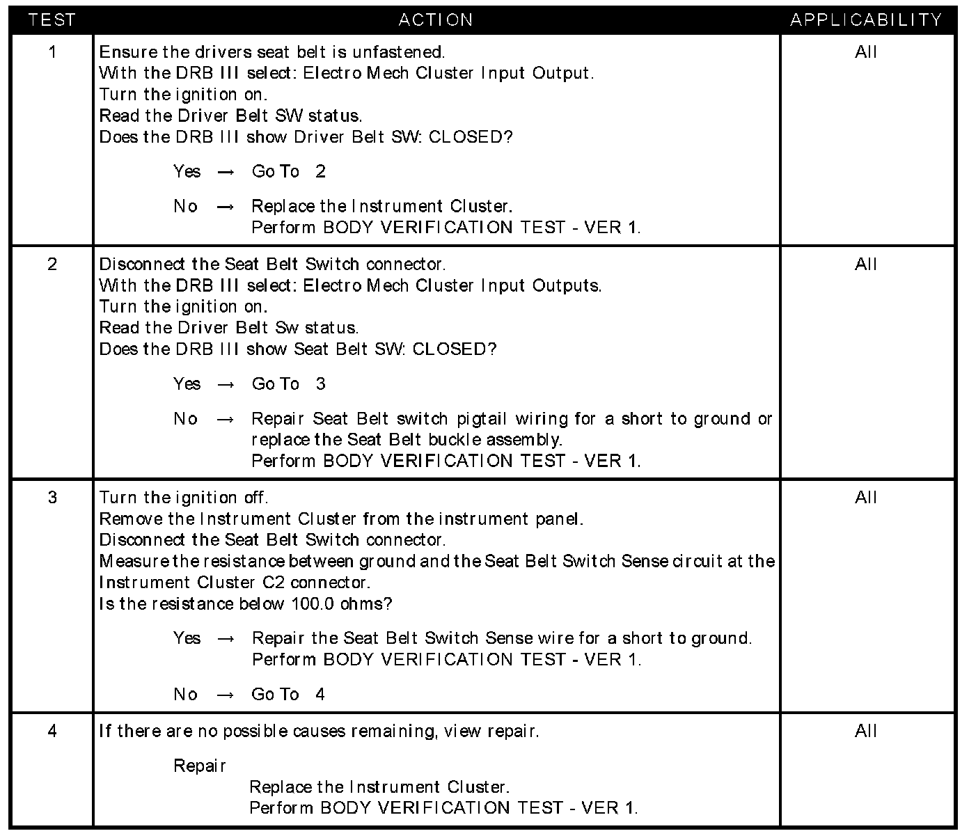 - Instrument cluster - seat belt switch shorted