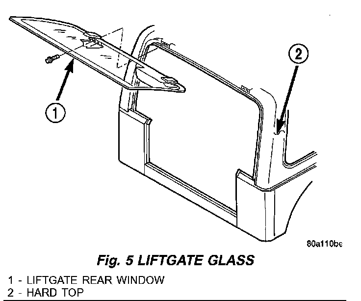 5. Remove the bolts attaching the liftgate hinge to the hardtop (Fig. 5).