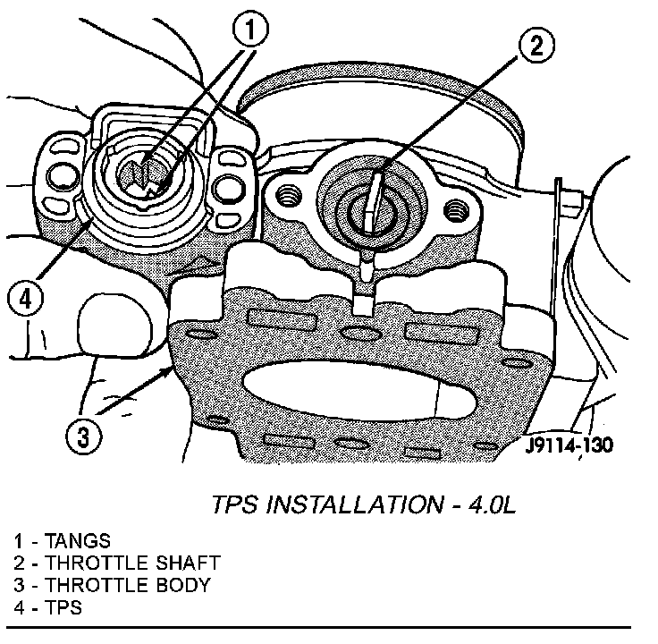 The throttle shaft end of the throttle body slides into a socket in the TPS. The TPS must be installed so that it can be rotated a few degrees. (If the sensor will not rotate, install the sensor with the throttle shaft on the other side of the socket tangs). The TPS will be under slight tension when rotated.