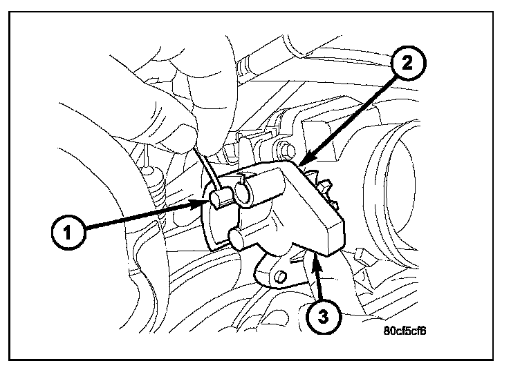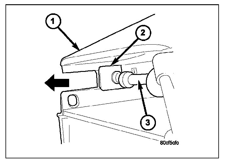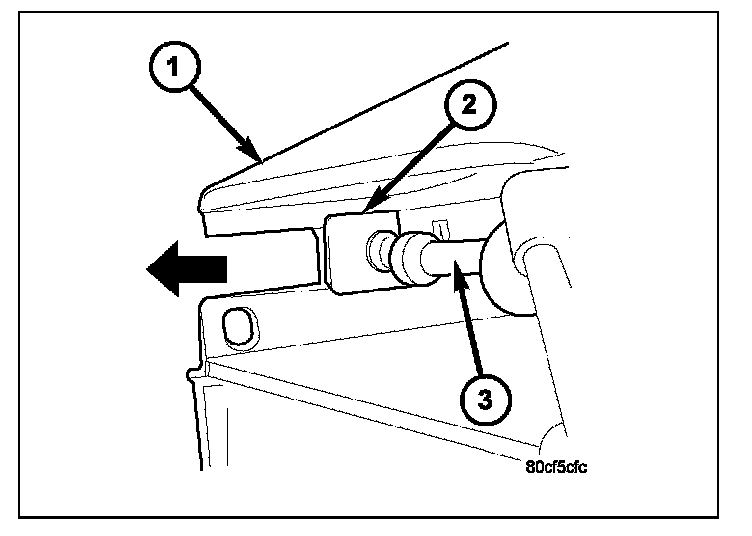 6. Slide speed control cable plastic mount (2) towards right of vehicle to remove cable from throttle body bracket.