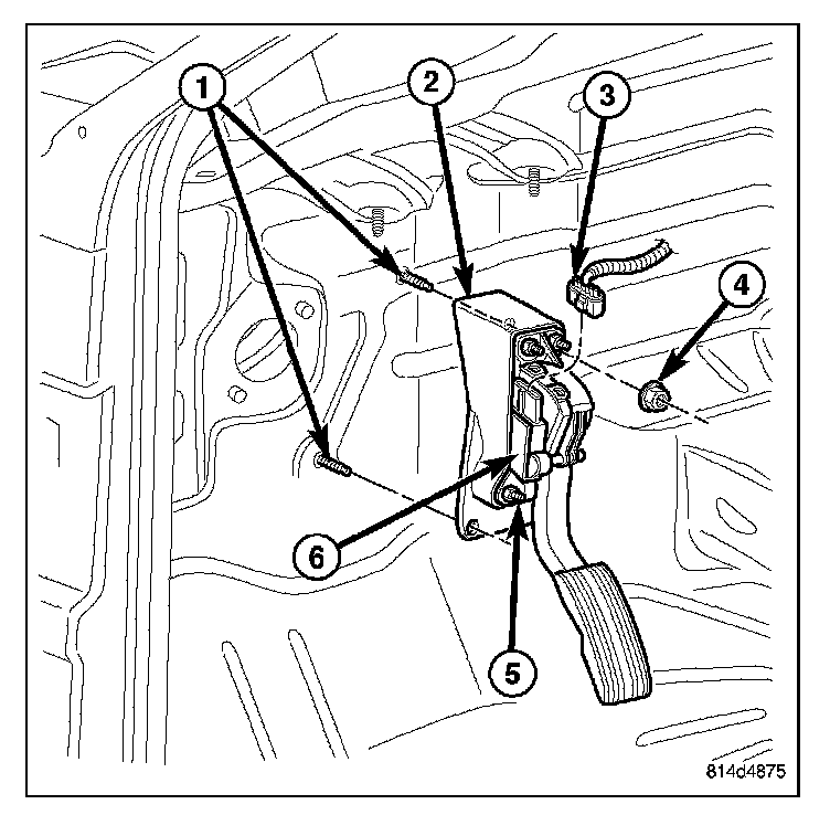 The Accelerator Pedal Position Sensor (APPS) (6) is attached to the accelerator pedal assembly under the instrument panel.