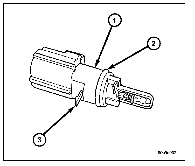 3. Gently lift on small plastic release tab (3) and rotate sensor about 1/4 turn counter-clockwise for removal.