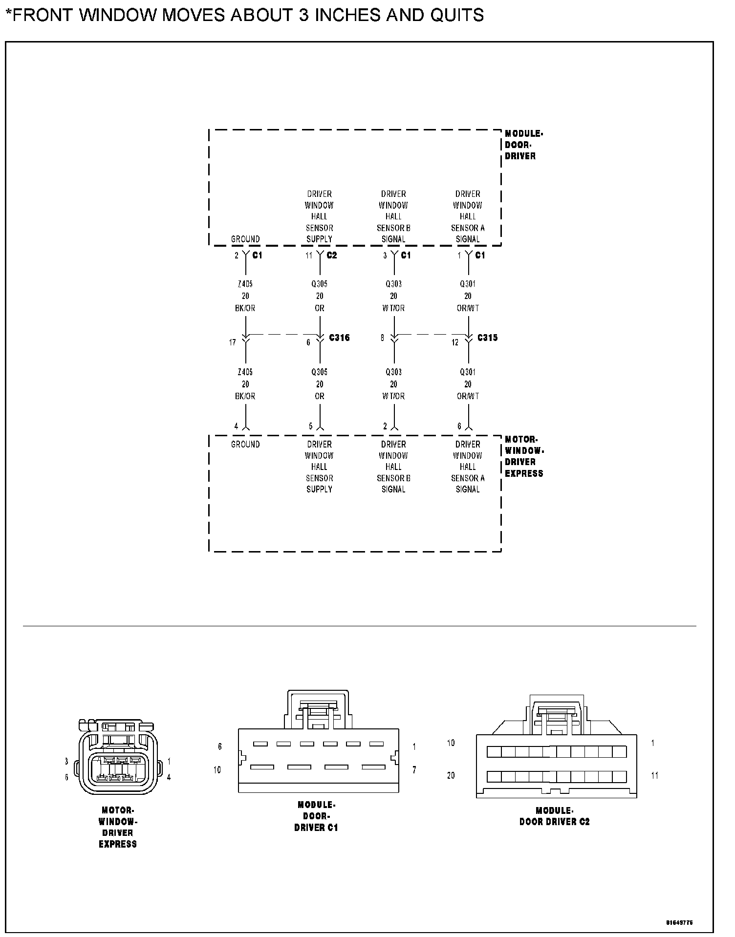- Window hall sensor A or sensor B signal circuits open