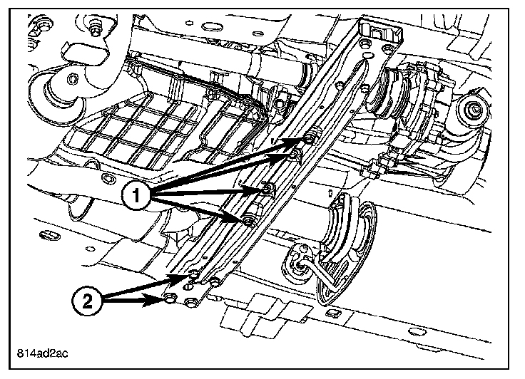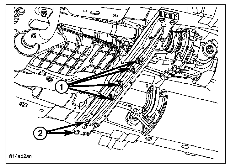 4. Remove the eight crossmember bolts (2) and remove the crossmember.