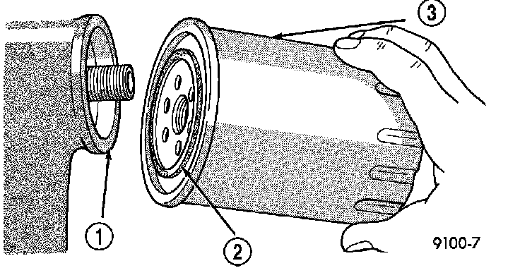 1. Lightly lubricate oil filter gasket (2) with engine oil.