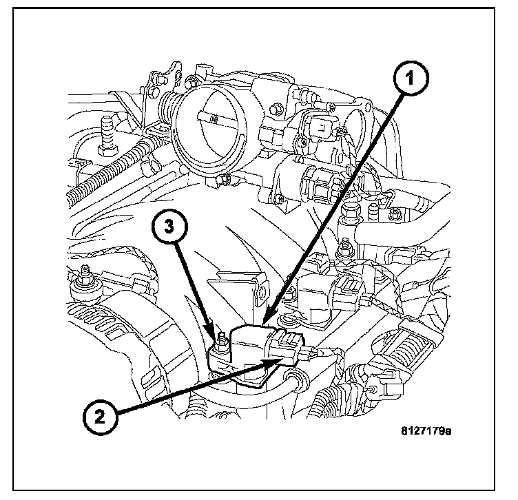 An individual ignition coil (1) is used for each spark plug. The coil fits into machined holes in the cylinder head. A mounting stud/nut (3) secures each coil to the top of the intake manifold. The bottom of the coil is equipped with a rubber boot to seal the spark plug to the coil. Inside each rubber boot is a spring. The spring is used for a mechanical contact between the coil and the top of the spark plug. These rubber boots and springs are a permanent part of the coil and are not serviced separately. An O-ring is used to seal the coil at the opening into the cylinder head.