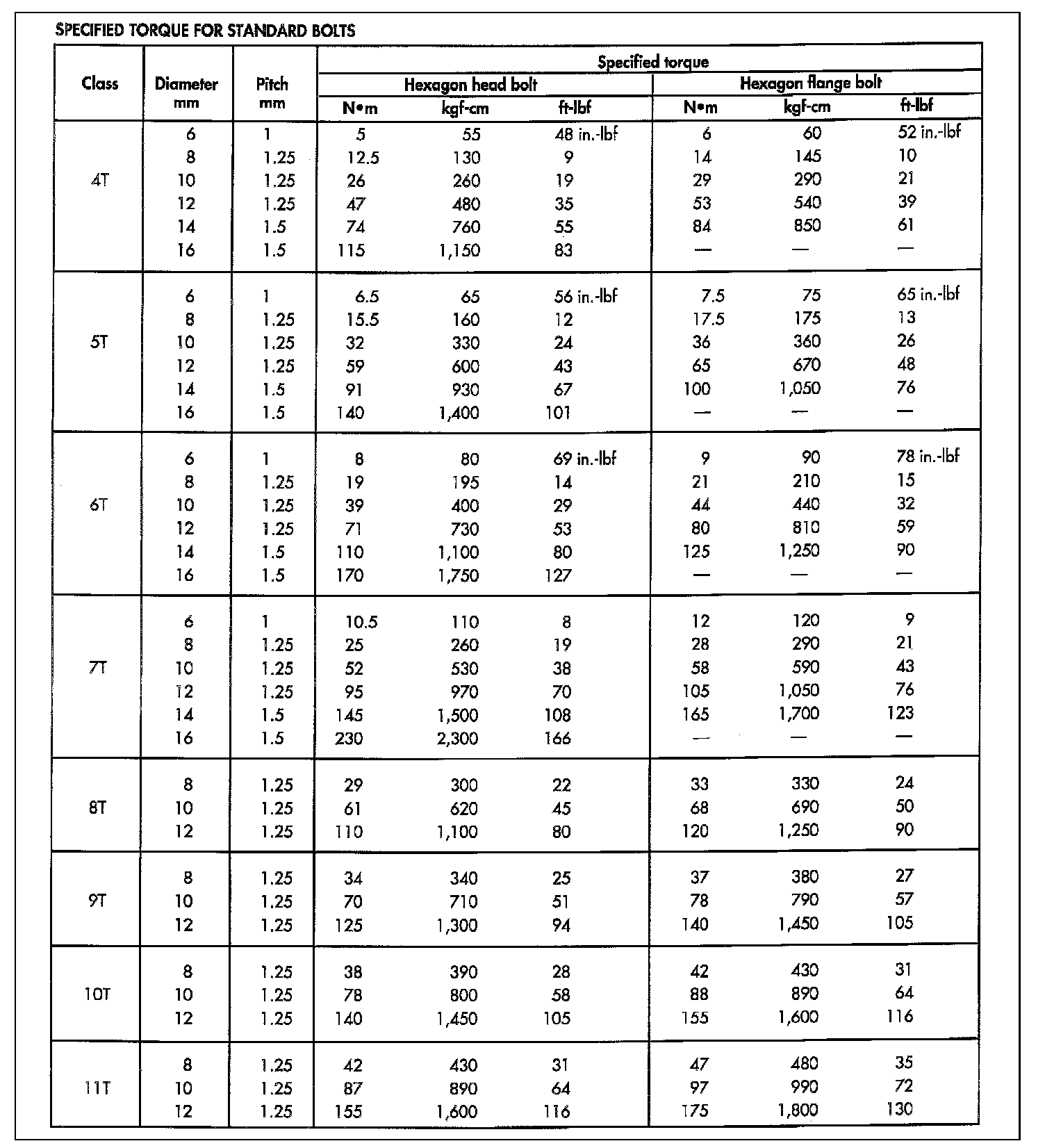 Individual Torque Charts appear within many of the Groups. Refer to the Standard Torque Specifications Chart for torque references not listed in the individual torque charts.
