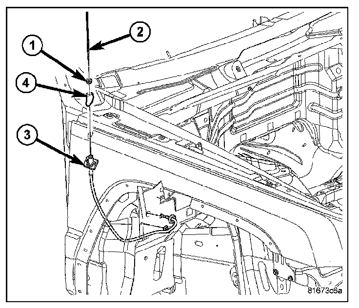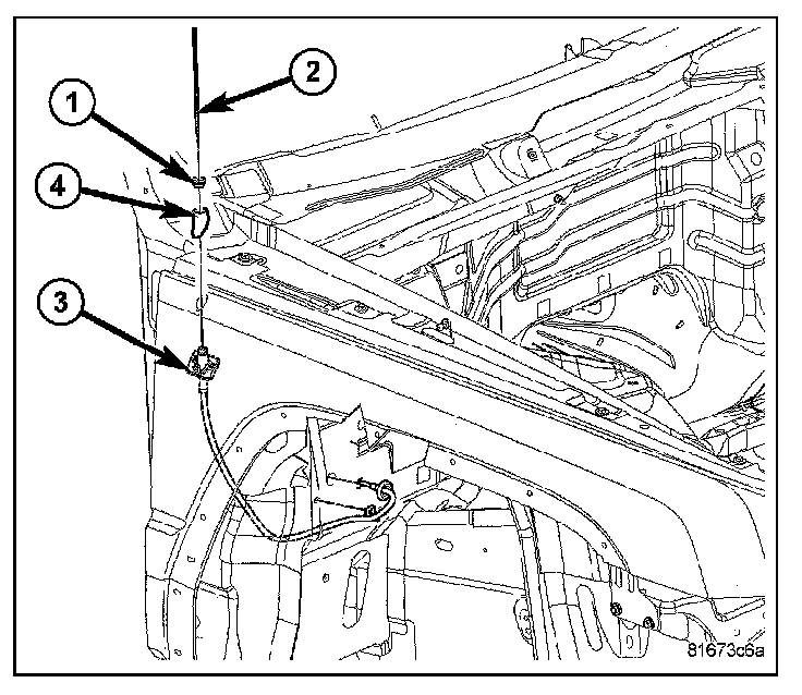 4. Lower the antenna body (3) through the mounting hole in the top of the fender.